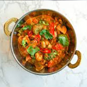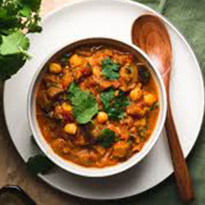 A hearty chickpea curry simmered in a rich onion-tomato base