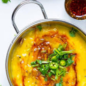 Yellow lentils cooked with garlic and onions, finished with a